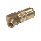 Materials: Connection, valve, valve body and unlocking sleeve: Brass or 1.4305, spring, circlip and locking balls: Stainless steel, seals: Viton (PTFE coated)