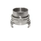 Function: For the symmetrical Guillemin couplings, the connection is made by interlocking 4 upright jaws. Usually a coupling is used on mobile systems which is equipped with an adjustable clamping ring (locking), which locks the jaws by twisting. To create the connection, at least one of the coupling halves must be equipped with a lock. Only the coupling with the lock is equipped with a soft seal.