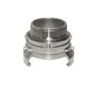 Function: For the symmetrical Guillemin couplings, the connection is made by interlocking 4 upright jaws. Usually a coupling is used on mobile systems which is equipped with an adjustable clamping ring (locking), which locks the jaws by twisting. To create the connection, at least one of the coupling halves must be equipped with a lock. Only the coupling with the lock is equipped with a soft seal.