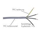 Description: PVC control cable, according to VDE 0250, 0271, 0281, 0293, grey PVC outer sheath, continuous figure imprint on the wires in accordance with VDE 0293, protective earthing conductor green / yellow, PVC wire insulation