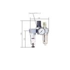 *standard series, please use in preference, as the regulation range is universally applicable, **drip cap a combination of metal and glass, ***delivered without key, ****as soon as the inlet pressure falls below the minimum input pressure, the drain valve opens automatically. The semi-automatic drain valve can be prevented from opening by screwing the drain screw tight.