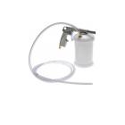 Application: By actuating the suction device a vacuum is generated in the container. As a result non-inflammable, non-toxic liquids are sucked into the container through the suction hose supplied. It is recommended that the container of the liquid be emptied on reaching its mean level of filling as this would prevent the liquid from flowing out with the vacuum-generating air jet.
