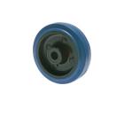 Properties: Elastic-solid rubber tyres, blue, no tracks, on a plastic wheel body, lower roll resistance.